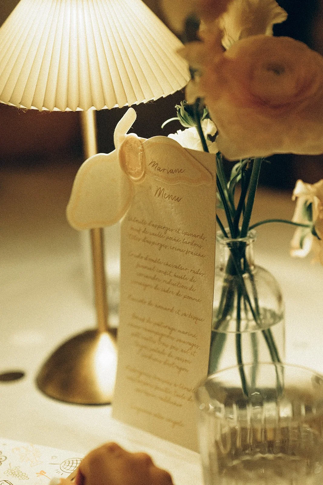 Absolument rien ne vous oblige à avoir des fleurs à la grandeur de votre mariage. Nous croyons que les chandelles, les textiles et l’art de la table font un grand impact à budget limité.